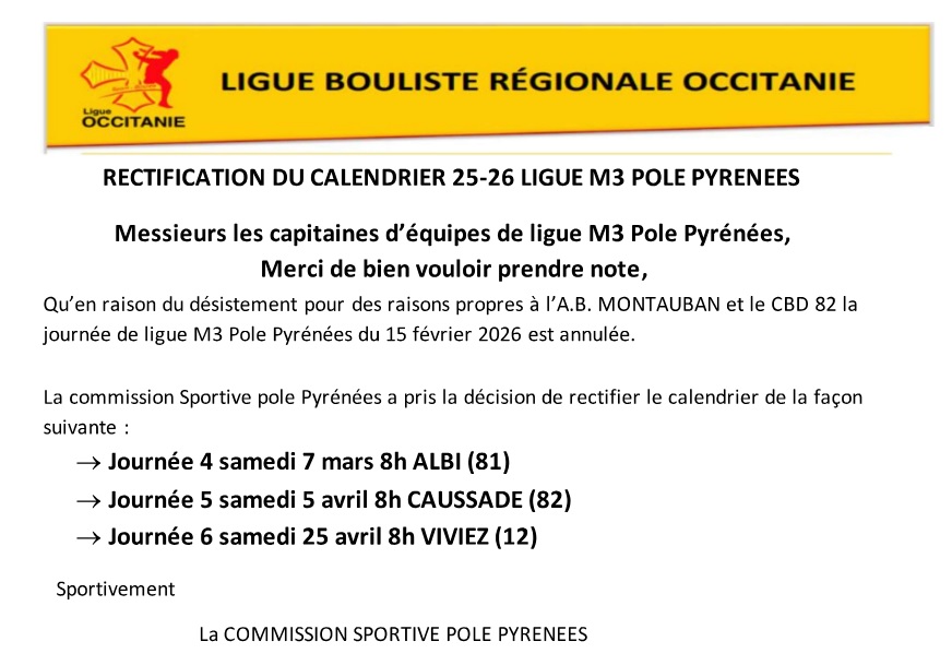 Ligue M3 Sport Boules les prochaines dates Pole Pyrénées 2026